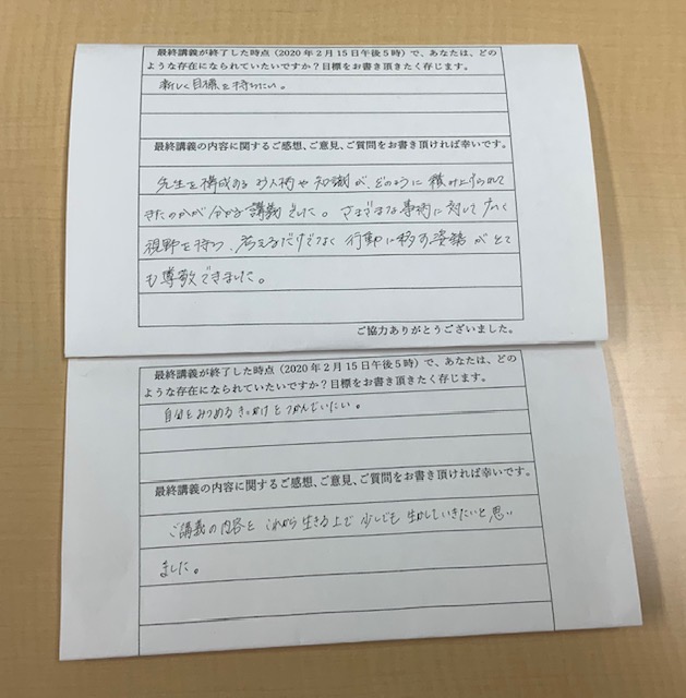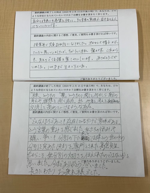 私の最終講義をご聴講なさった方々から寄せられたご意見などをご紹介させて頂きます。
