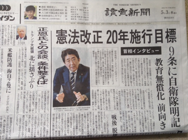 しかし、読売新聞に掲載された安倍総理大臣の憲法改正に関するインタビュー記事を読み、予定を変更することにしました。