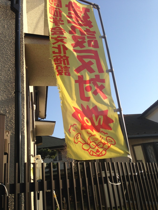 そして会館に隣接するブロックの家屋と道一つはなれた家屋に幟が建てられました。残念ながら個人宅の特定ができないよう工夫して撮影したので、その風景を写真でもっとはっきりお伝えできないのが残念です。