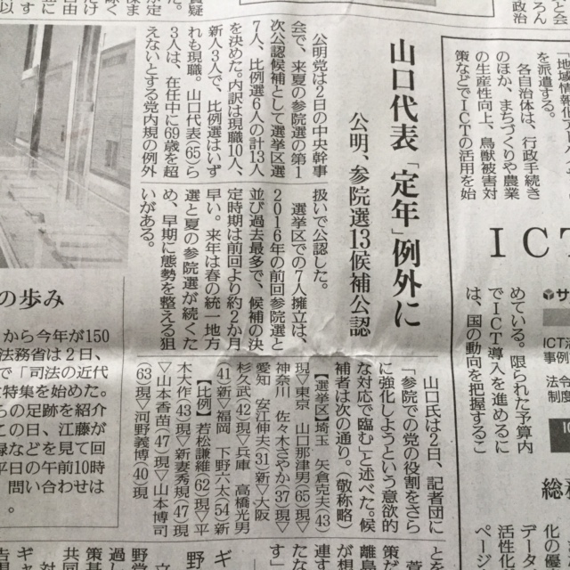 公明党には人材がいないものだと、この記事を読んで痛感させられました。次期参議院議員選挙の立候補予定者の13人の中の3人もが、定年制の例外とされています。